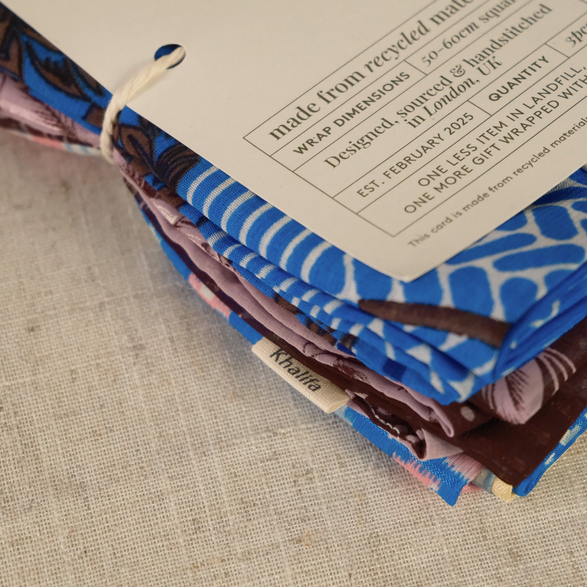 Sold in packs of three, these one-of-a-kind wraps are not only beautiful but sustainable, offering a stylish alternative to disposable wrapping paper. The aim is for the recipient to reuse the wraps for their own gifts, creating a ripple effect of eco-conscious gifting and helping to reduce waste. By choosing these wraps, you're joining a movement to step away from single-use gift wrapping and making a positive change for the environment.