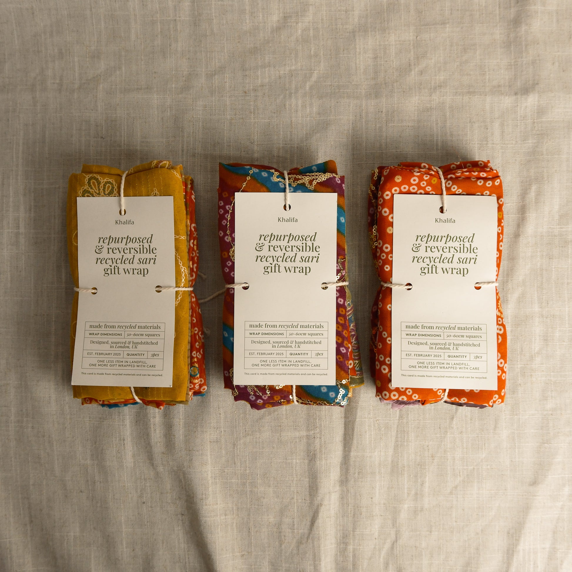 Sari Gift Wrap (Set of 3) | Repurposed & Reversible